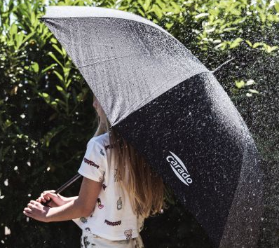 Thanks to its Teflon-coated fabric, water immediately rolls off the Carado umbrella with fibreglass frame, ensuring that it always stays dry. The polyamide safety slider prevents your fingers from getting caught