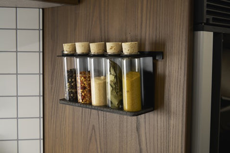 The practical jars with a cork stopper create a van-life feeling and are perfect for coarse spices and herbs. Depending on requirements, the spice holder can be hung in the right place on the wall and thus fits perfectly with other elements in the interior of the vehicle.