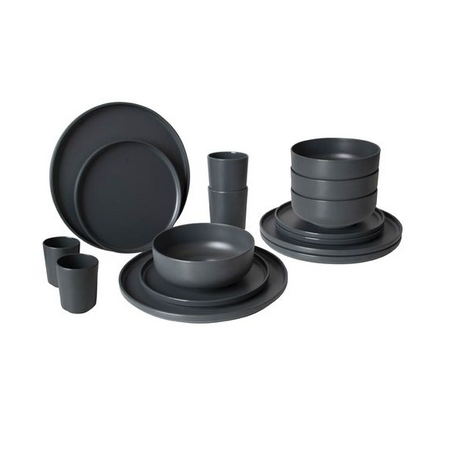 A trendy 16-piece tableware set made of 100% melamine. Melamine tableware is virtually unbreakable, very lightweight, scratch resistant and dishwasher safe. Suitable for 4 persons and consists of 4 dinner plates, 4 breakfast plates, 4 bowls, 4 mugs. Ideal to take with you to the campsite or in the garden. Food approved.